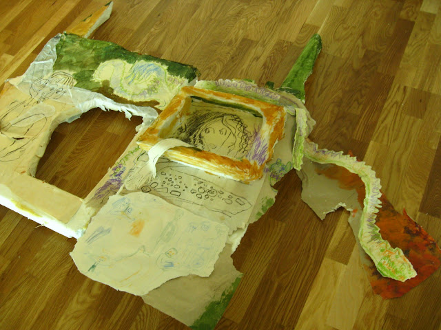 Aceasta a fost povestea expunerii finale a instalatiei Baby-blues 3, cunoscuta printre prieteni drept ”Tavan-garda”. A stat timp de o luna in ”pridvorul” salii antiseptic de estetice de la mezaninul proaspetei Biblioteci Nationale, la final a fost sacrificata (nu pe altarul artei, ci al inghesuielii permanente) si i s-a pastrat drept trofeu... pielea de imagini, care poate fi admirata acum din nou sub tavanul ”galeriei camera mica” :) Imi pare totusi rau ca nu pot insera aici si sunetele ei, mai precis inregistrarile de-a lungul timpului cu copiii mei, care introduc foarte bine in atmosfera. Poate o sa invat sa pun cumva si o inregistrare audio.